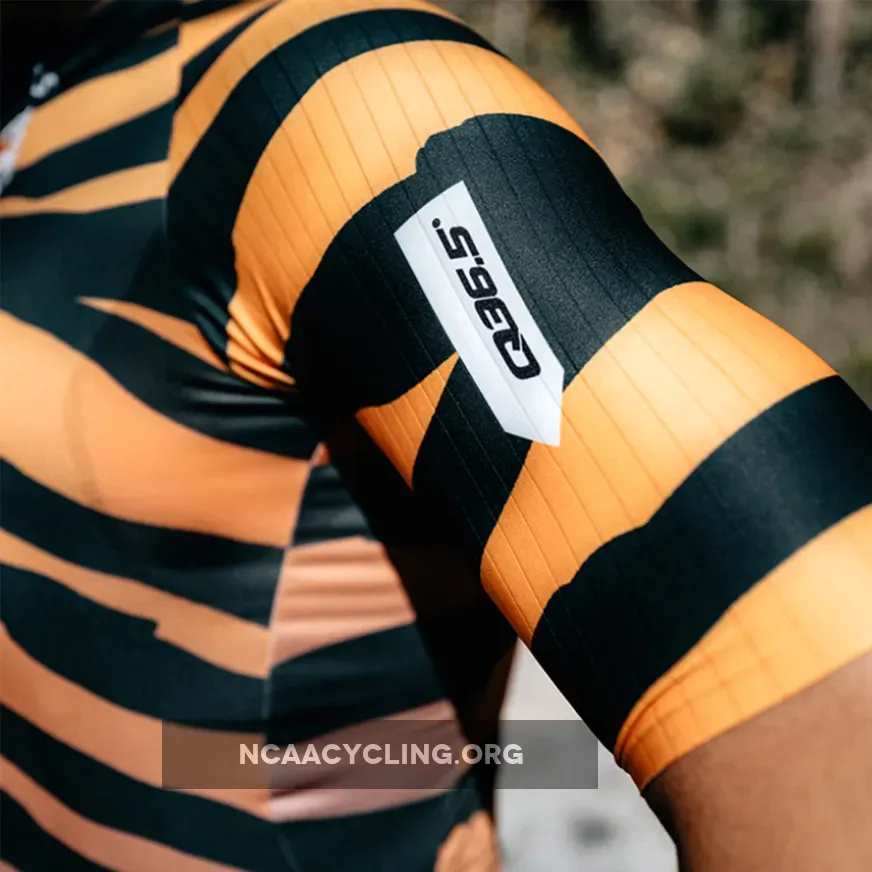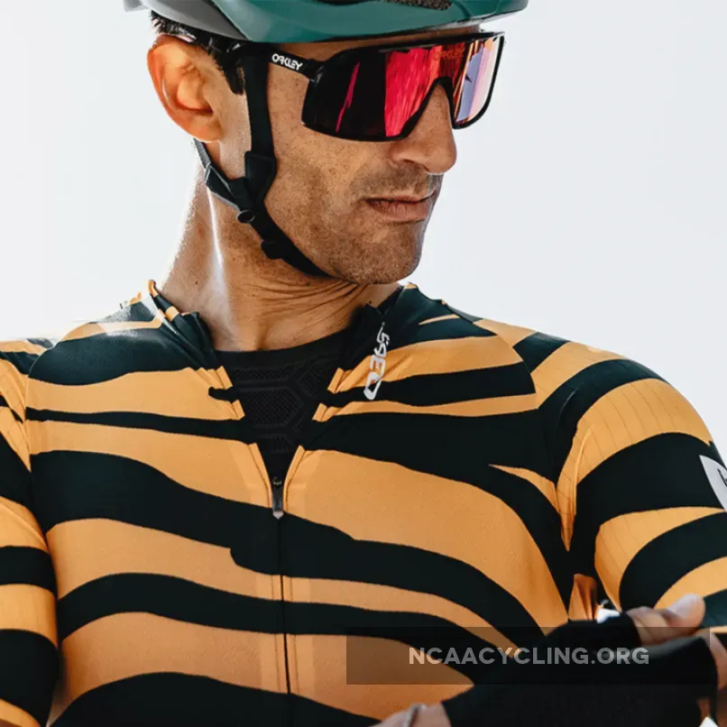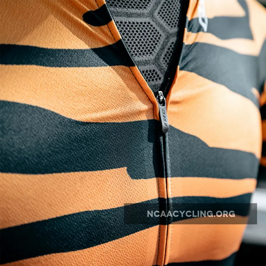 Q36.5 R2 Tiger jersey, Q36.5 designed a new Raglan shirt, updating the raglan cut used for a long time in traditional cycling links. After careful studies both in the field of body mapping and aerodynamics, the new Raglan R2 was designed using a combination of different tissues strategically positioned with consequent new look and offering all the advantages of detailed search. The sleeves are made with a aerodynamic ribbed fabric while the front panel is a microphorated fabric and on the back of the shirt there is a honeycomb fabric. Overall, this innovative combination makes the R2 shirt very light (110gr) and very breathable. Historical note: the construction of the Raglan sleeve appeared for the first time on the cycling scene in 1986, when the Dutch PDM team introduced this new cut for reasons of brand visibility; The large PDM logo was extremely visible on the larger sleeve. This was the beginning of the popularity of this mesh style.